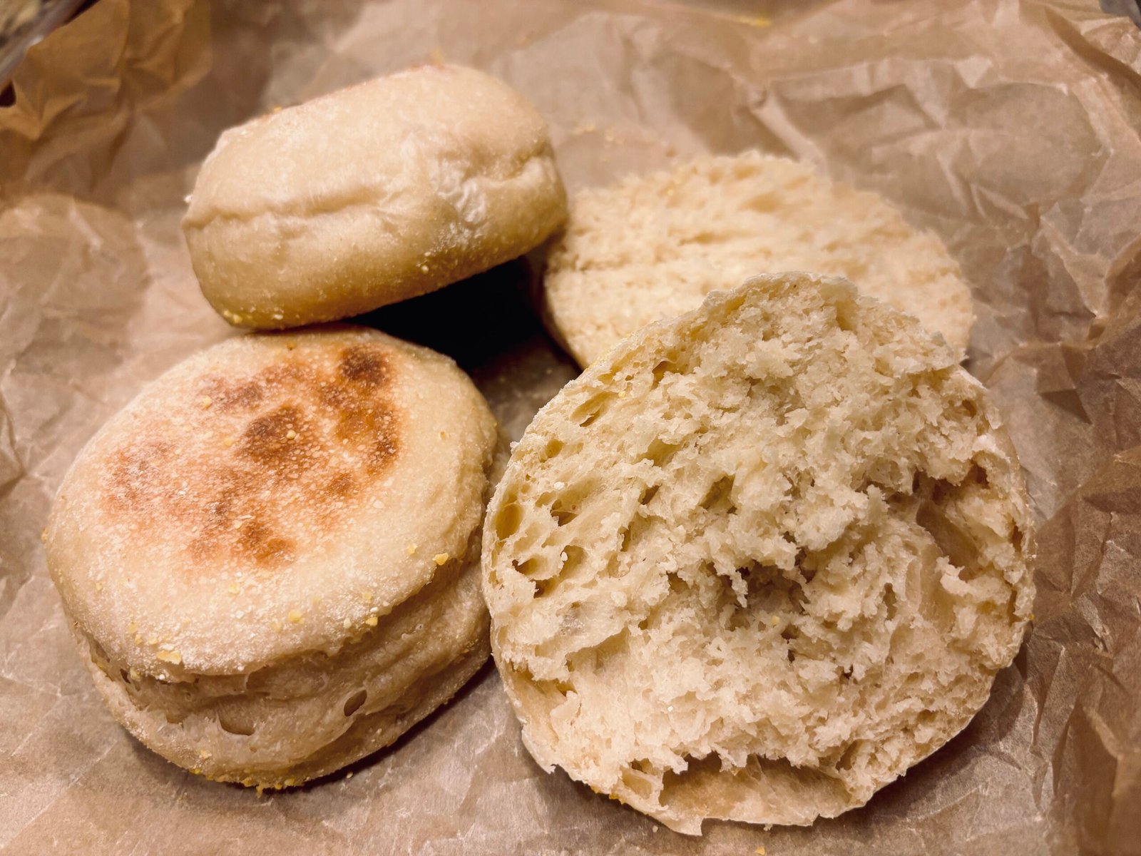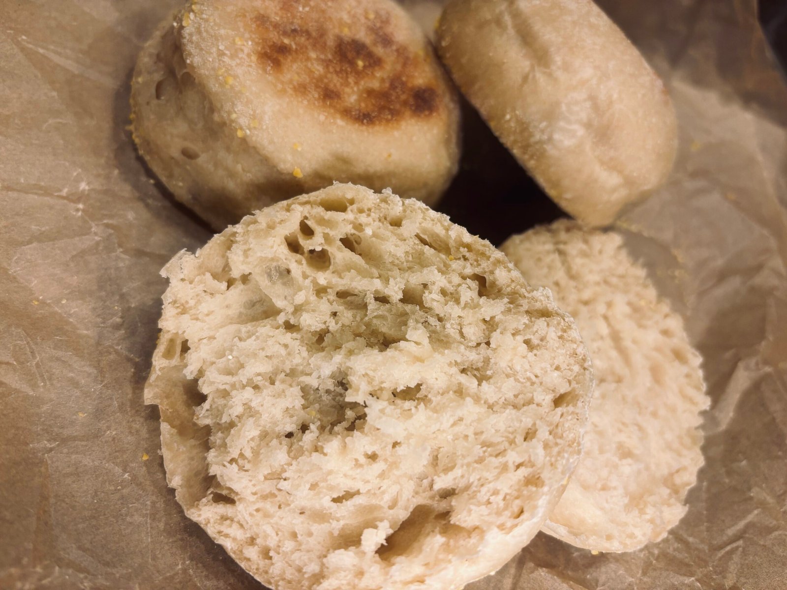 Looking for a delightful addition to your breakfast or brunch? Our sourdough English muffins offer a delicious flavor and irresistibly soft texture perfect for your favorite spreads, toppings, or even a quick snack. These muffins are naturally fermented to enhance taste, texture and digestibility. Also, there is a proper way to cut open an English muffin (I did not know this). Use your fork to stab all the way around the side of the English muffin and then open it up. It helps with creating those nooks and crannies English muffins are known for.